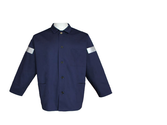 CVC 60% Cotton 40% Polyester 240GSM Navy Jacket With Reflective Strips Two Contrast Pockets