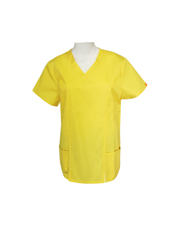 160 GSM 65 % Polyester 35% Cotton Yellow Short Sleeve Women Medical Uniform Scrubs